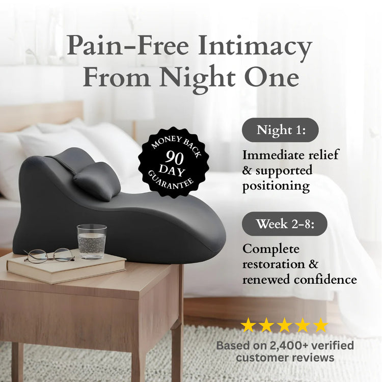 Yes. By elevating and aligning the body, Moodie reduces pressure on the hips and lower back — the areas that most often cause people to stop or avoid intimacy.
